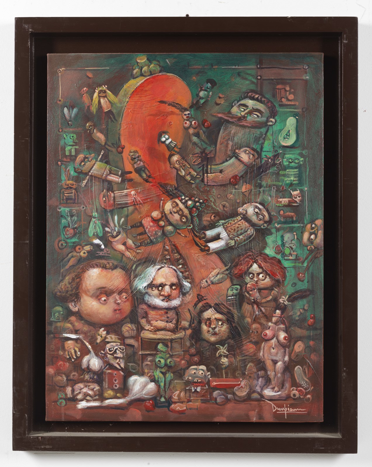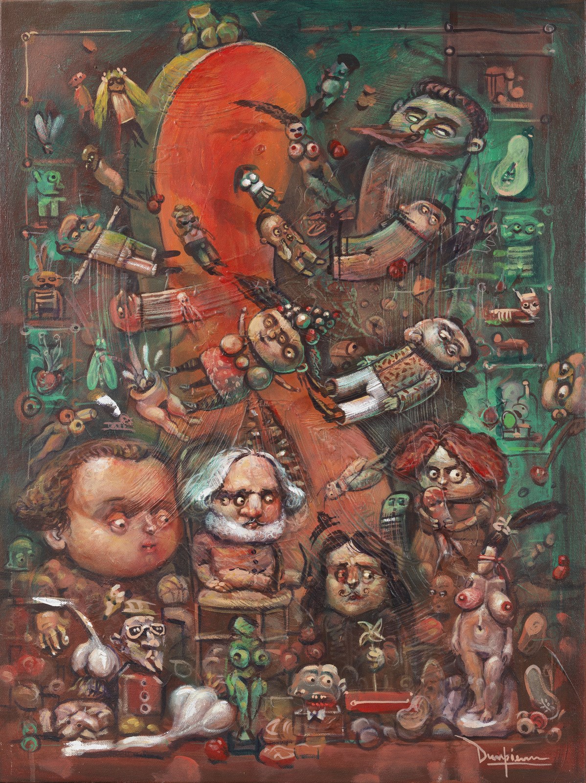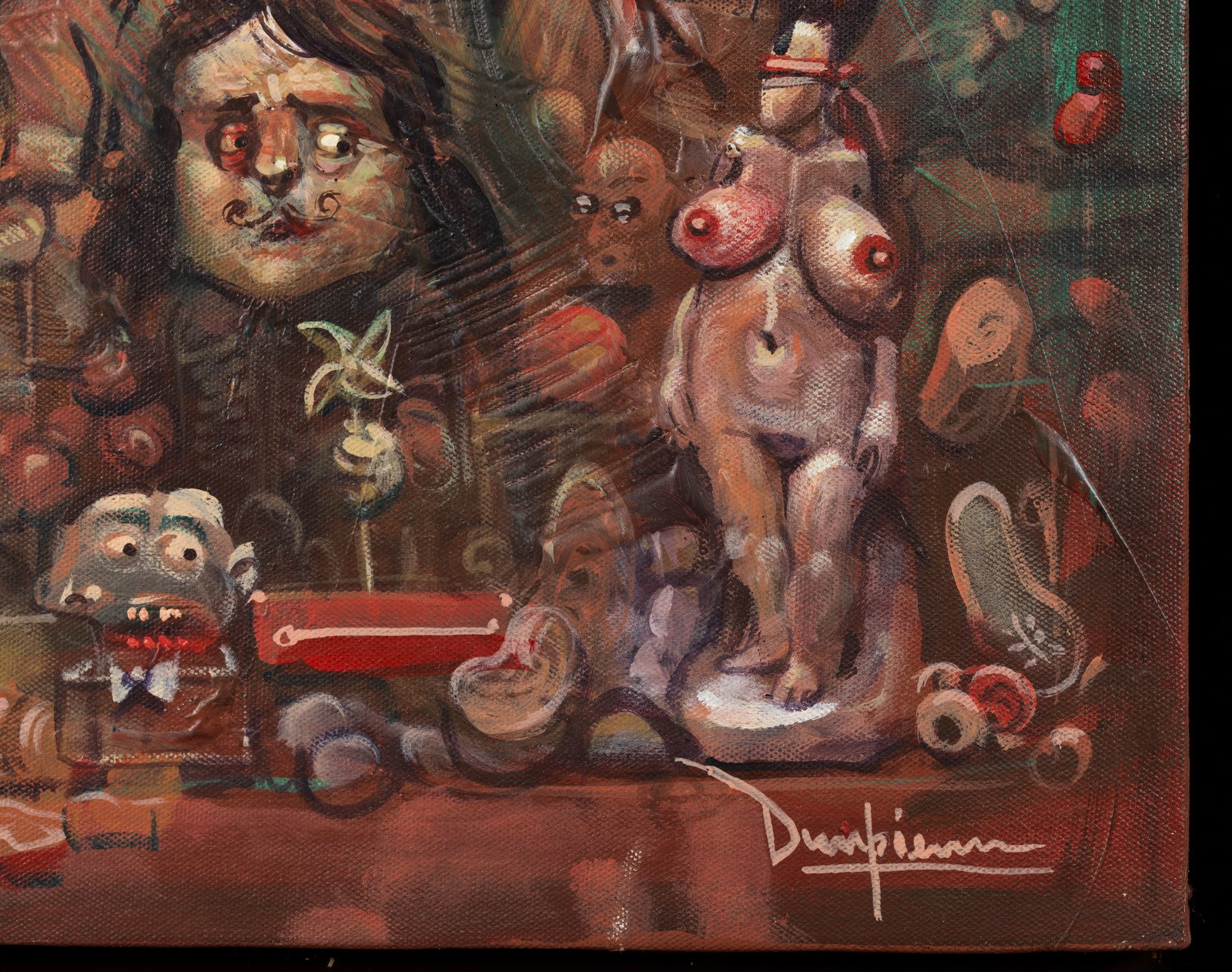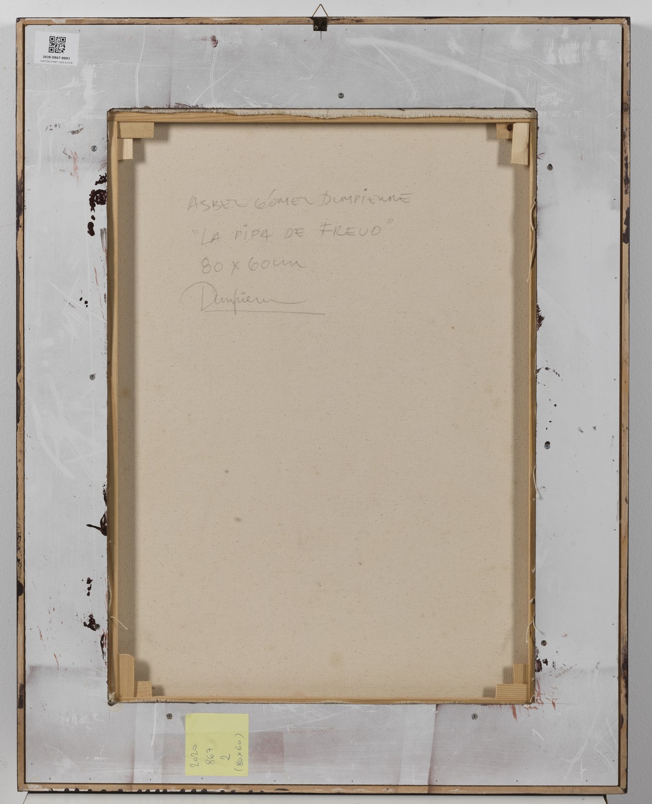 DUMPIERRE ASBEL (n. 1971) La pipa de Freud. Olio su tela . Cm 60,00 x 80,00. Firma in basso a destra. Al retro titolo e firma.
