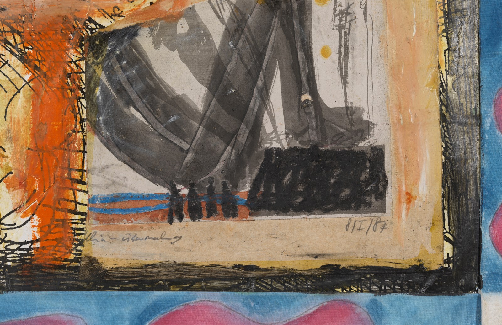 NIKOLAUS HEINRICH (n. 1955) Senza titolo. 1987. Tecnica mista su tela. Cm 145,00 x 100,00. Firma e anno in basso a destra. Cornice presente