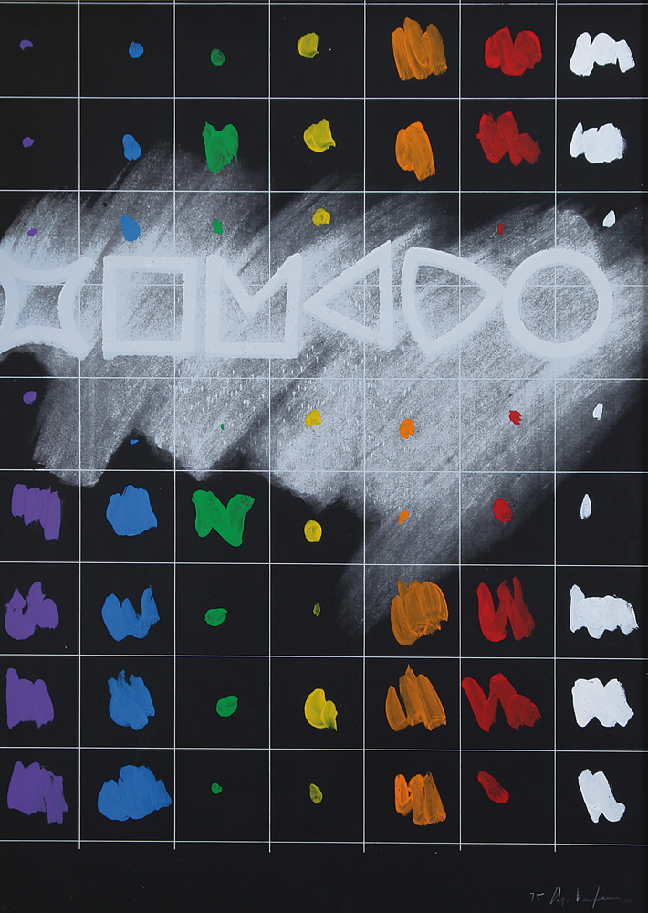AGOSTINO FERRARI Milano 09/11/1938 Senza titolo, 1975 tecnica mista su cartoncino nero cm. 70x50, firma e anno in basso a destra, opera registrata presso l'Archivio Agostino Ferrari come da dichiarazione su foto.