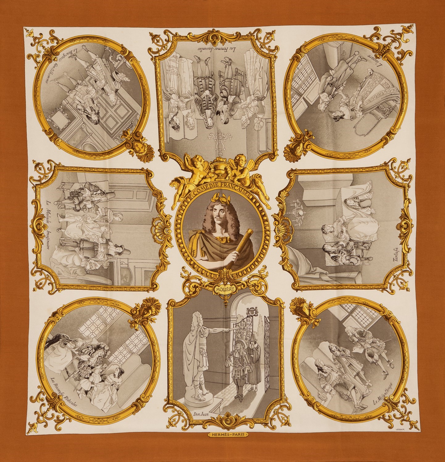 in seta su fondo color panna, bordo color caramello, Philippe Ledoux, raro (lievi difetti).