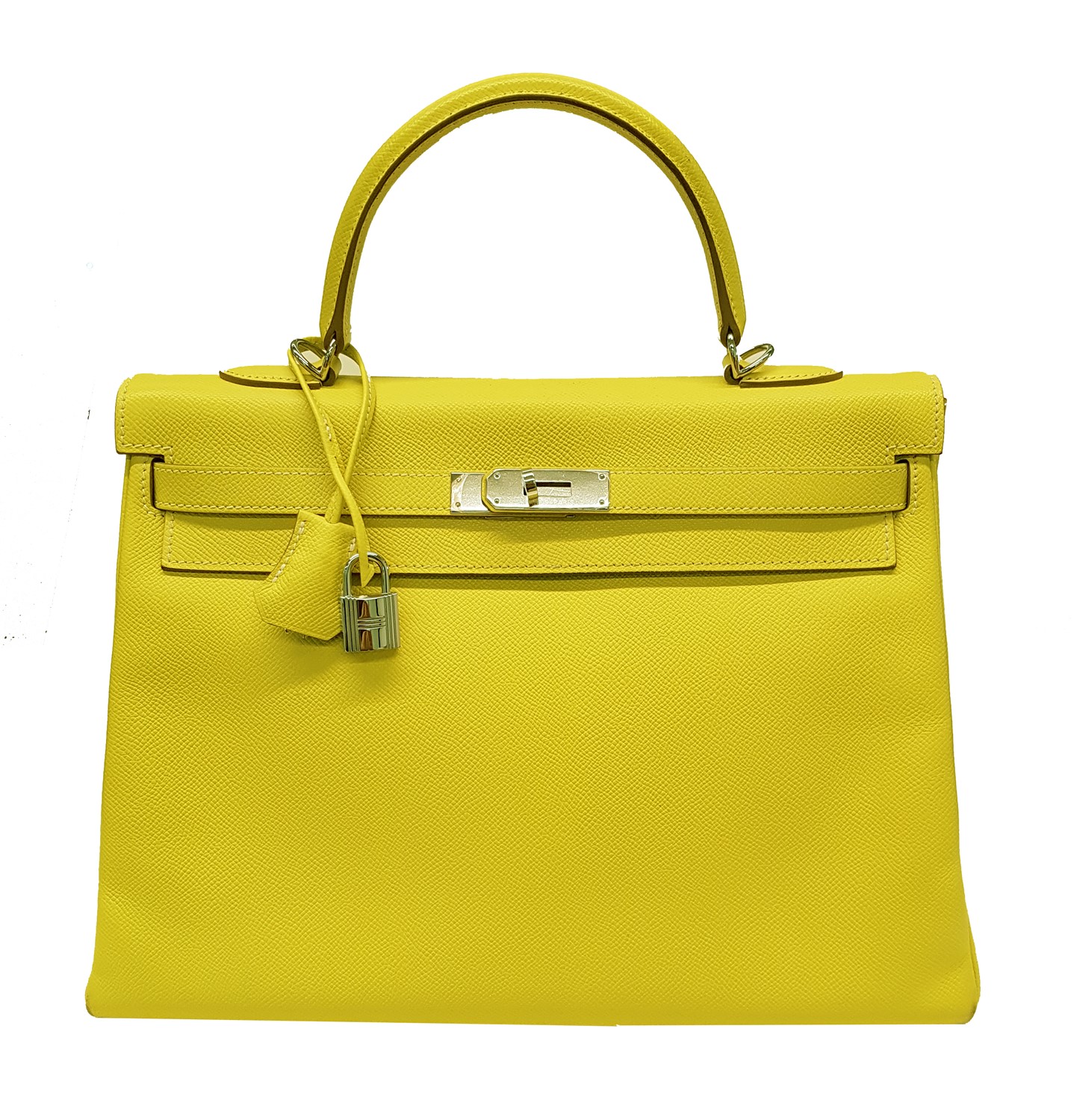 in pelle Epsom color lime, con tracolla, dettagli in palladio con pellicole protettive, interno in pelle color grigio perla, con sacchetto (difetti).