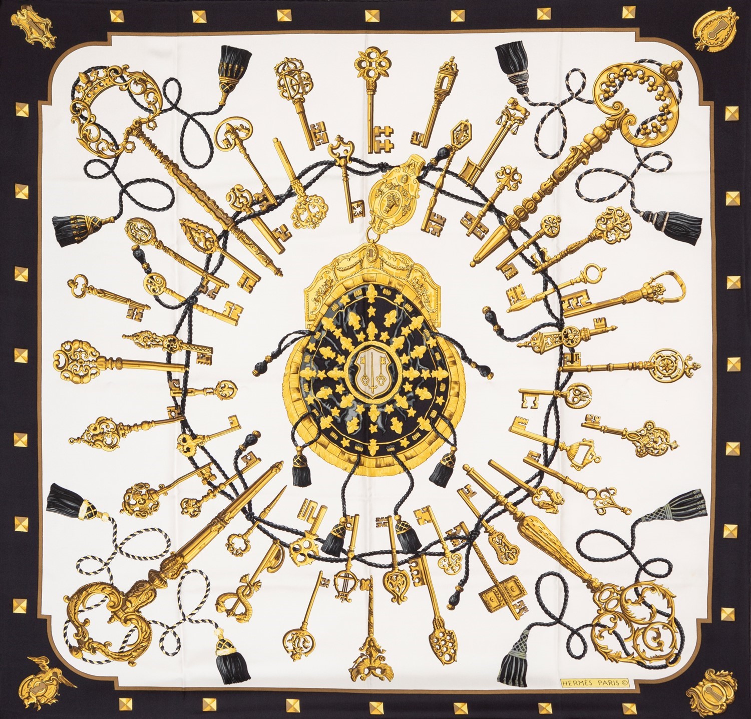 in seta su fondo color bianco bordo color nero, Caty Latham (lievi difetti).