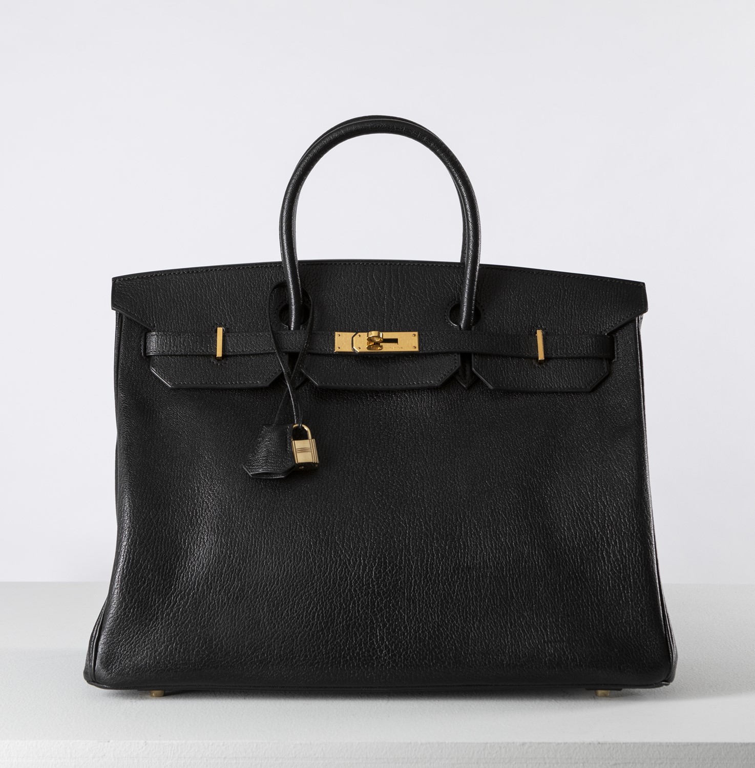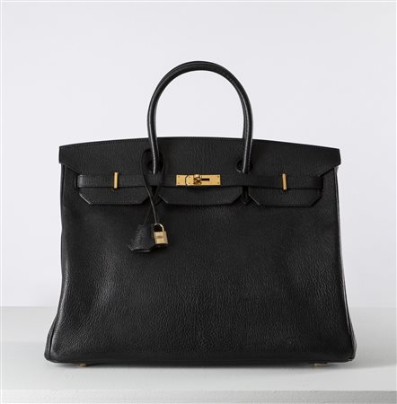 in pelle chèvre color nero, dettagli in metallo dorato, con sacchetto e scatola (lievissimi difetti).