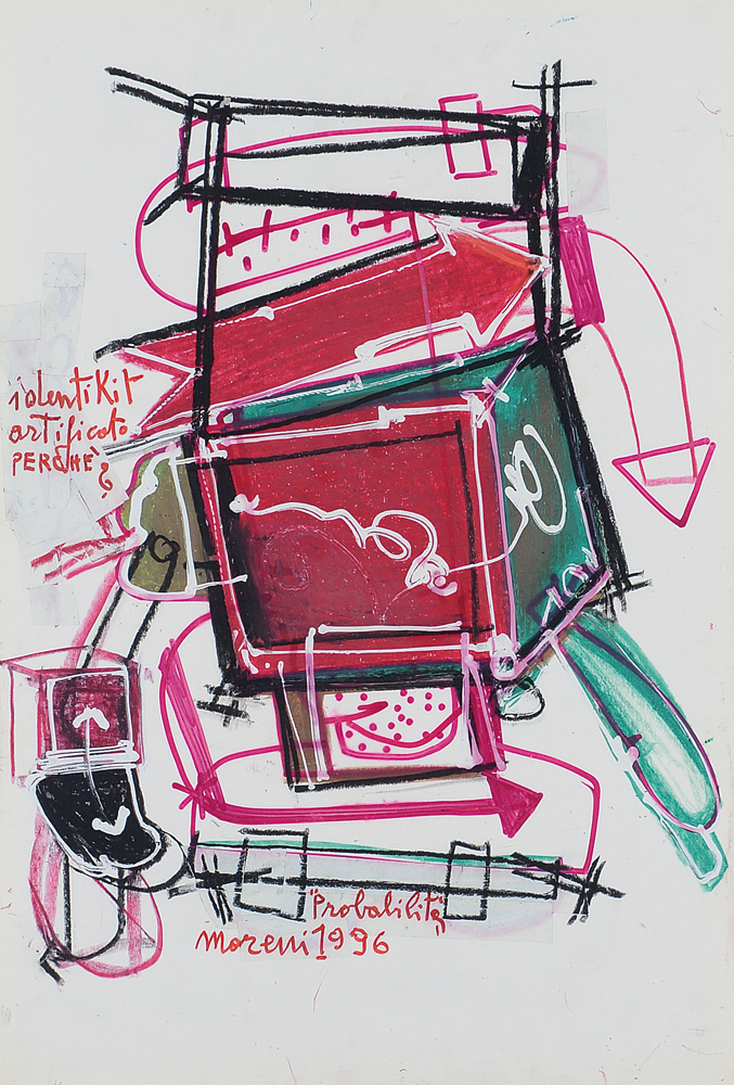 MATTIA MORENI Pavia 12/11/1920 - Brisighella 1999 L'identikit artificato, 1996 pastello ad olio su carta cm. 72,5x48, firma, titolo e anno in basso, dichiarazione di Yvonne Prath Moreni datata 1999 su foto, opera registrata presso l'Archivio Mattia Moreni come da dichiarazione su foto.