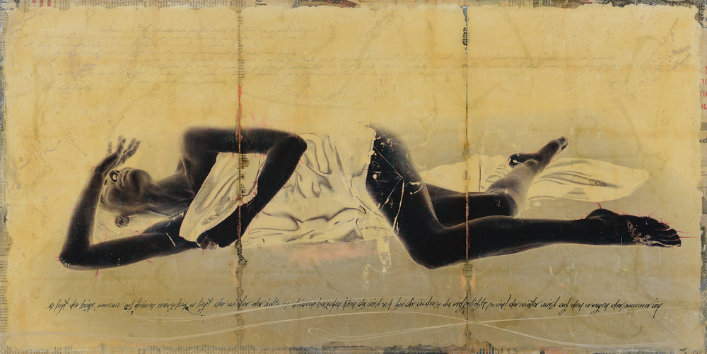 HYENA Novellara (RE) 24/12/1965 Senza titolo, 2007 tecnica mista su tela cm. 50x100, firma, anno e timbro a ceralacca al retro, dichiarazione d'autenticità dell'artista allegata, opera priva di cornice.