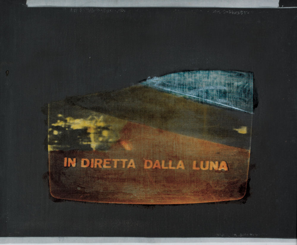 MARIO SCHIFANO Homs (Libia) 1934 - Roma 26/01/1998  In diretta dalla Luna, 1976 smalto su tela emulsionata cm. 50x60, firma al retro, verbale di perizia della Finarte del 22/11/1988 (MI) su foto, opera registrata presso l'Archivio della Fondazione Mario Schifano come da dichiarazione su foto.