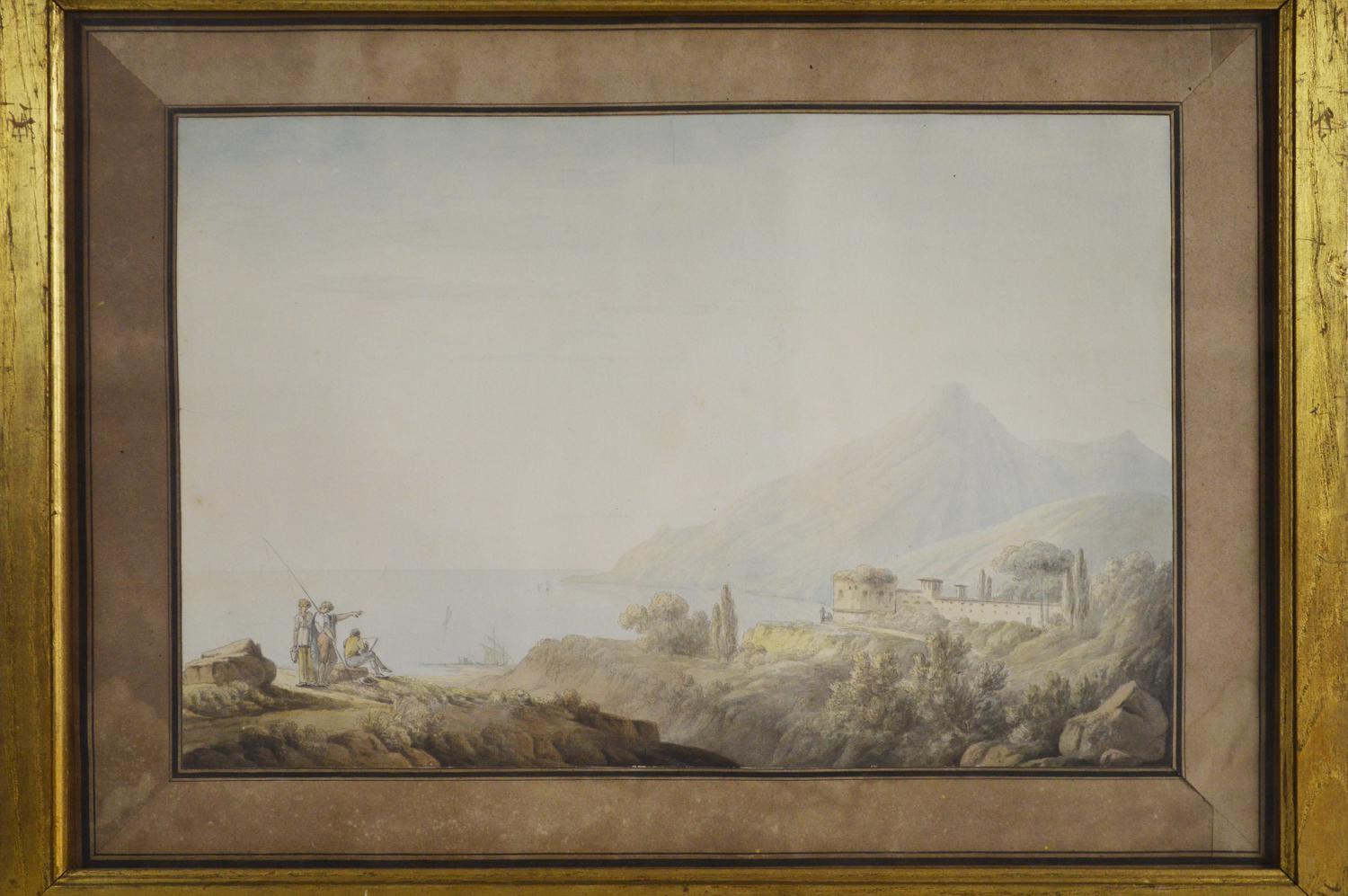 Robert Freebairn VEDUTA VERESO PAESTUM gouache su carta, cm 40x60 sul retro:...