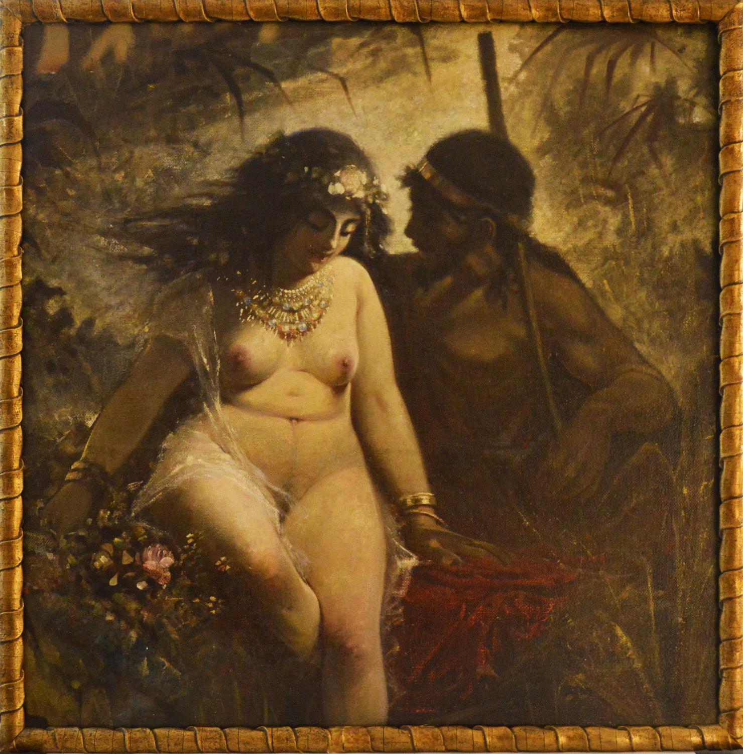 Attribuito a Hans Makart SALAMBO' E MATHO' olio su tela, cm 108x108 Salammbò...