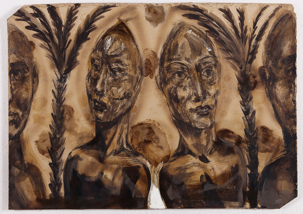 BRUNO CECCOBELLI Montecastello Vibio (Pg) 02/09/1952 Come fragili vasi, 1989 tecnica mista su cartone cm. 52,5x73, firma, titolo, anno e timbro della Blu Art al retro, dichiarazione d'autenticità dell'artista e archivio dell'artista su foto.