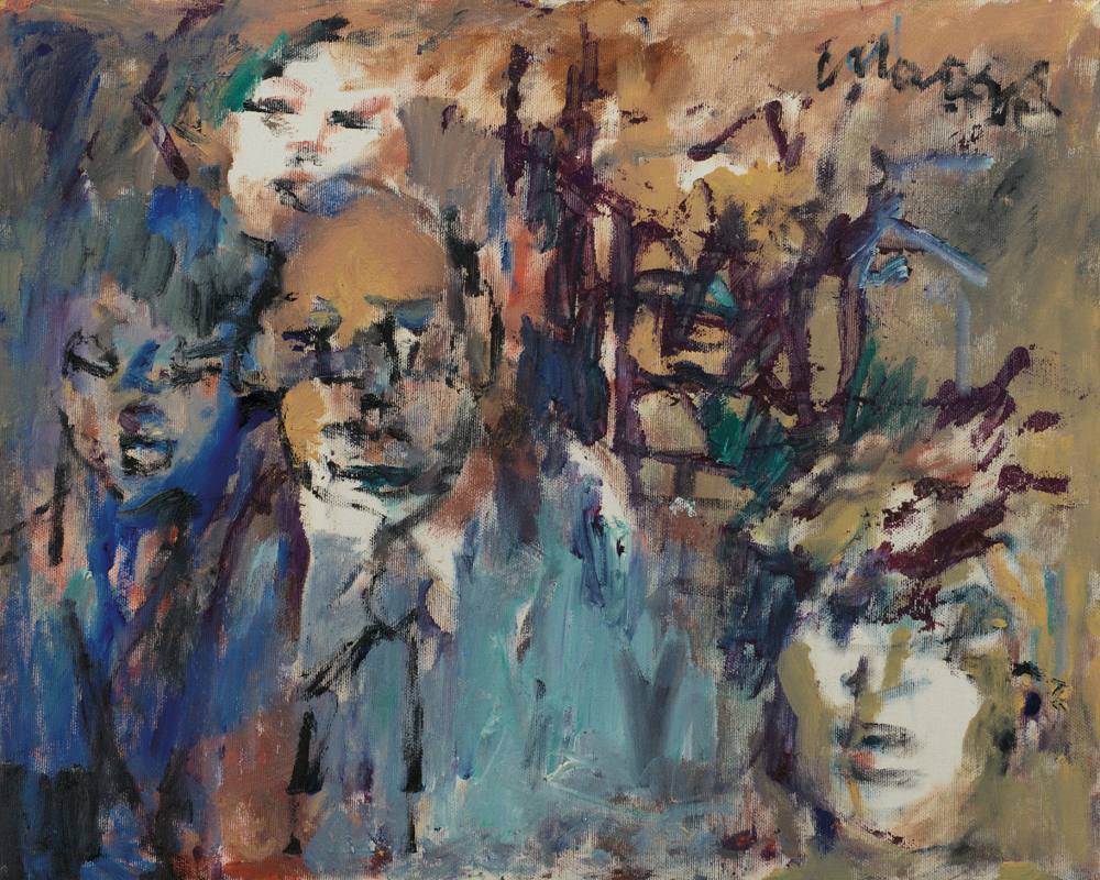 MINO MACCARI Siena 24/11/1898 - Roma 17/06/1989 Senza titolo, 1989 olio su tela cm. 40x50, firma in alto a destra, opera registrata presso l'Archivio delle Opere del Maestro Mino Maccari al numero 3659 come da dichiarazione su foto, pubblicato sul catalogo della mostra "Gli artisti amici di Franco Pugliese", tenutasi nell'agosto 2005 presso la Galleria Mesiano di Filandri (VV).