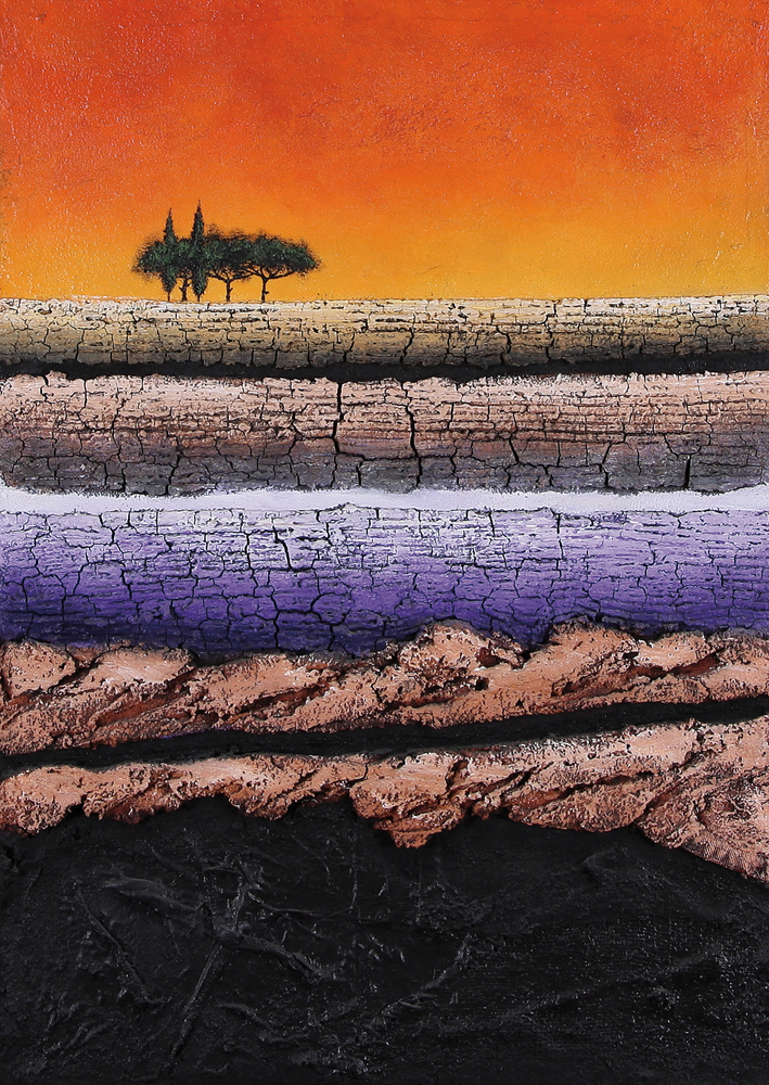MARIO PASCHETTA Milano 27/04/1949 Presenza landscape, (2000) malte e terre...