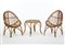 Coppia di poltrone e tavolino in giunco e malacca. Italia, anni '50. (poltrone