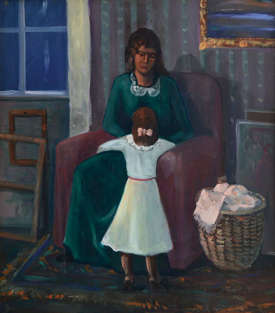 PINO PONTI Venezia 12/04/1905 - 1999 Maternità, 1923 olio su tavola cm. 67x58,5; firma e anno in basso a destra.