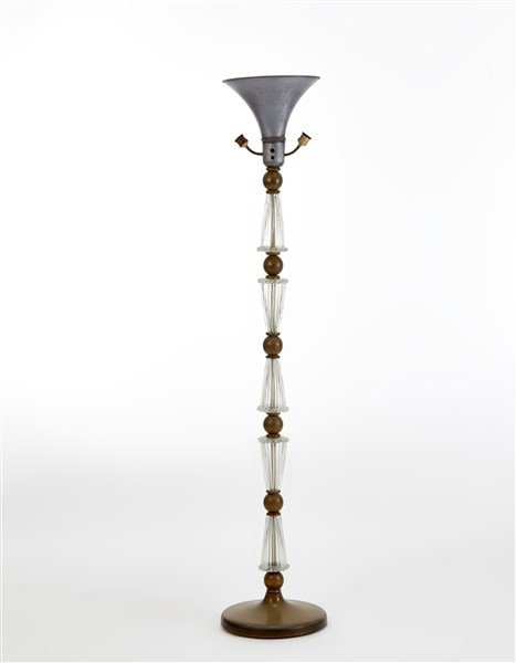 Manifattura di Murano Lampada da terra con base in ottone e fusto formato da con