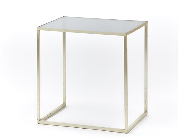 Tavolino. Bregnano, anni '80. Struttura in metallo argentato spazzolato, piani in vetro fumè. (cm 51x51x38) (lievi difetti)