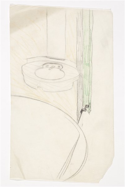 Sketch for the handbasin in the bathroom of Casa Zentner. Zurich 1964-1969. Venice, 1964-66. Pencil and green crayon on dusting paper.. (30x17.8 cm.) (slight defects)