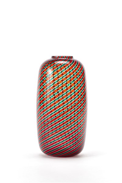 Paolo Venini Vaso cilindrico affusolato in vetro soffiato a canne ritorte incolo