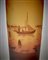 Ovoid vase with small mouth in double glass with decoration with a view of Venice and boats with figures in shades of red lacquer on a vermilion red and honey-yellow shaded orange background. 1920ca. "D'Argental" cameo signature in relief. (h 30.5 cm.)