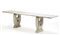 Grande tavolo con piano rettangolare in marmo bianco venato, basi decorate a volute in marmo. Italia, anni '30. (cm 302x81x65) (difetti)