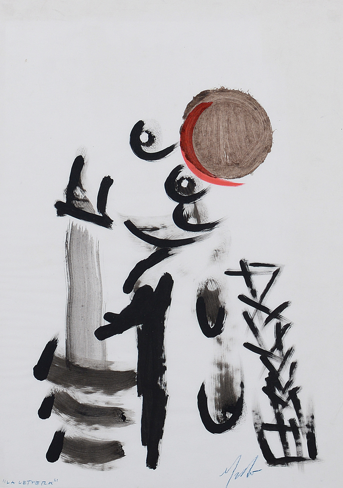 SERGIO DANGELO Milano 1932 La lettera tecnica mista su carta cm. 41,5x29,5, firma in basso a destra, titolo in basso a sinistra, pubblicato su Sergio Dangelo Il Disegno Moderno e Contemporaneo, I Quaderni del Disegno Italiano, Edizioni La Scaletta (San Polo-RE), pagina 38.