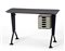 Tavolino da dattilografa con cinque cassetti laterali della serie "Arco". Produzione Olivetti Arredamenti Metallici, Ivrea, anni '50. Metallo verniciato nero, piano in metallo rivestito in pelle sintetica, cassettiera in metallo verniciato grigio con cassetti in plastica grigia. (cm 112x67,5x42) (lievi difetti)