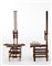 Coppia di sedie scultura. Anni '90. Legno naturale ad incastro e metallo brunito. Marcate a fuoco e incise con le iniziali dell'artista "AS". (cm 59,5x139x50)