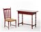 Scrittoio ad un cassetto sottopiano con gambe e traverso poggiapiedi torniti. Unito a una sedia con gambe tornite, seduta in canna d'India, schienale con alternanza di elementi cilindrici e piatte traforate. Esecuzione Serafino Arrighi, Cantù o Mariano Comense, 1943. Legno massello di faggio verniciato rosso amaranto e grigio. (sedia cm 44,5x94x48; scrittoio cm 100x78,5x43) (difetti al piano del tavolo e restauri)