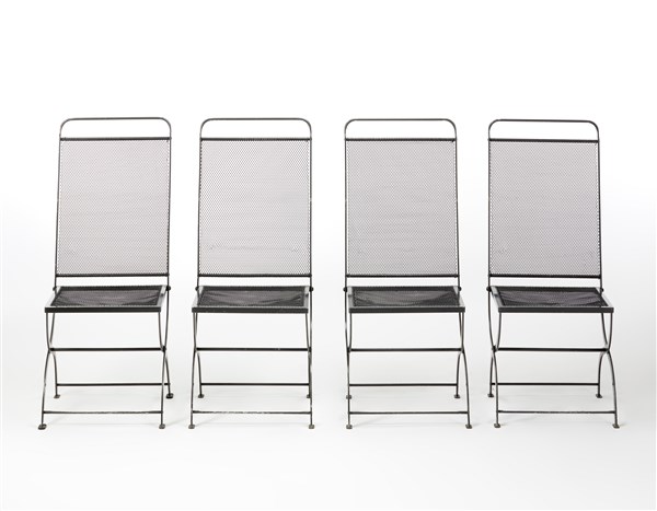 Four chairs model "S4 Nonaro". Produced by Azucena, Milan, 1959. Metallic gray iron and galvanized iron wire mesh. (41.5x100x50 cm.) (slight defects)