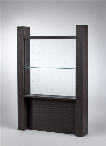 Showcase sculpture. Produced by Ideal Form Team, 1983. Solid black ebonized wood with crystal and perspex inserts. (180x120x25 cm.) (slight defects)