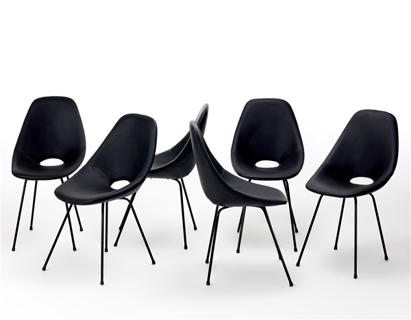 Vittorio Nobili Sei sedie modello "Medea". Produzione Fratelli Tagliabue, Italia