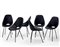Sei sedie modello "Medea". Produzione Fratelli Tagliabue, Italia, 1955ca. Ferro verniciato nero, compensato curvato rivestito in similpelle nera. (cm 45x84x54,5) (rivestimento e imbottitura sostituita)