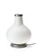 Lampada da tavolo con vasetto portafiori in vetro incamiciato lattimo acidato sulla superficie esterna con base e vasetto portafiori in alluminio verniciato grigio. Italia, anni '60/'70. (h cm 44,5)