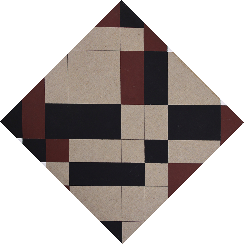 ARIO Napoli 1922 - Borgomanero (NO) 29/03/2007 Senza titolo, 1973 acrilici su tela romboidale cm. 128x128, lato cm. 90, firma, anno e dedica dell'artista ad personam al retro, opera priva di cornice.