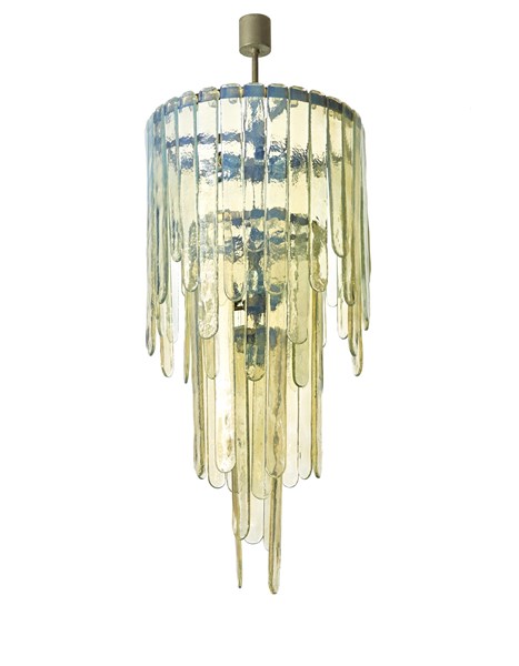 Lot 572 | Carlo Nason Lampada a sospensione con pendenti in vetro opalescente leggermente