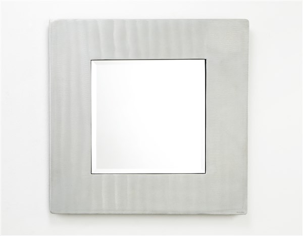 Specchio da parete con cornice in alluminio pressofuso satinato. Produzione Burchiellaro, anni '70. Firma incussa. (cm 69x69) (lievi difetti)