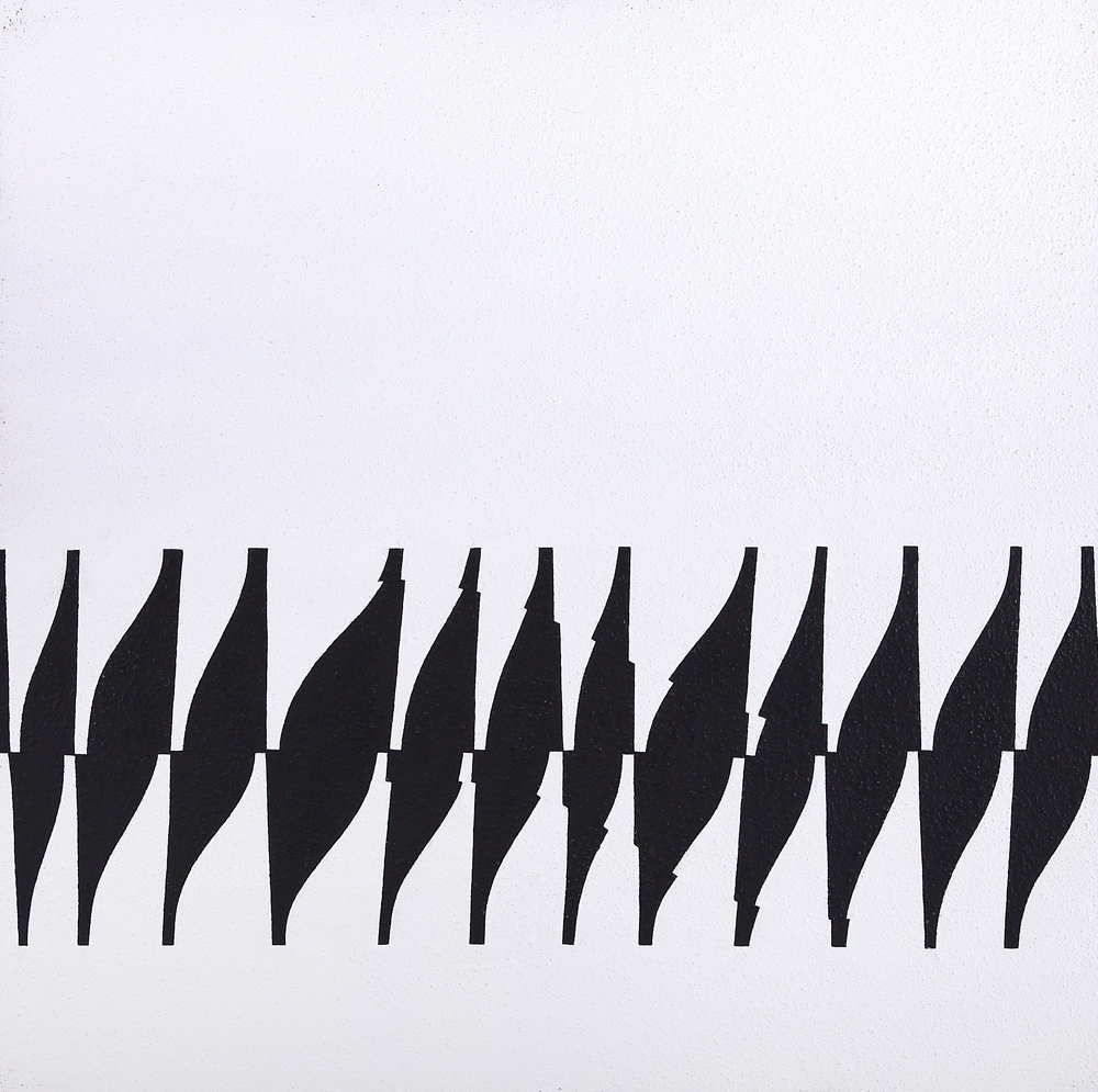 ENRICO SIRELLO Livorno 1930 - Livorno 26/02/2012 Murale, oggetto in bianco e nero, 1974 acrilico su tela cm. 80x80, firma, titolo, anno, tecnica e certificato dell'artista al retro, opera priva di cornice.