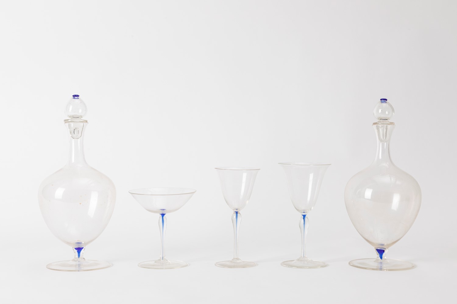 composto da 48 bicchieri e 2 bottiglie (12 coppe, 12 flute, 12 calici e 12 bicchierini per Rosolio)
