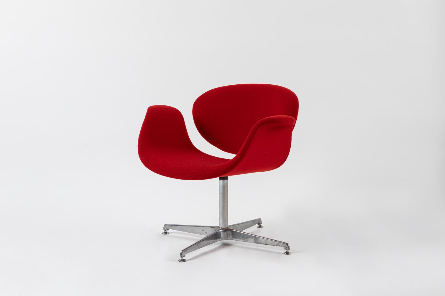 copertura restaurata con tessuto originale.Produzione Artifort. Prima serie degli anni ’60, ricnoscibile dal piede a quattro braccia.Etichetta metallica sul fondo.