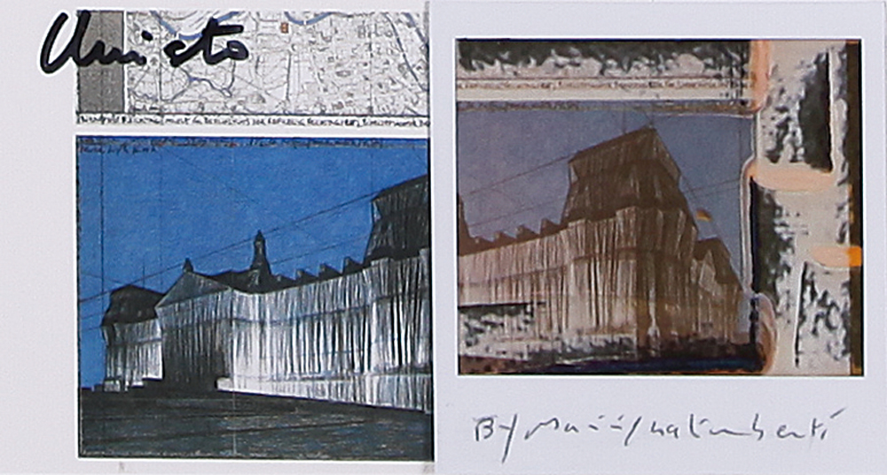 MAURIZIO GALIMBERTI Milano 1956 Ready made Christo affezione n. 579, 2011 composizione di cartolina firmata Christo e polaroid firmata Galimberti cm. 10x20, titolo, firma, anno e timbri dell'artista al retro.