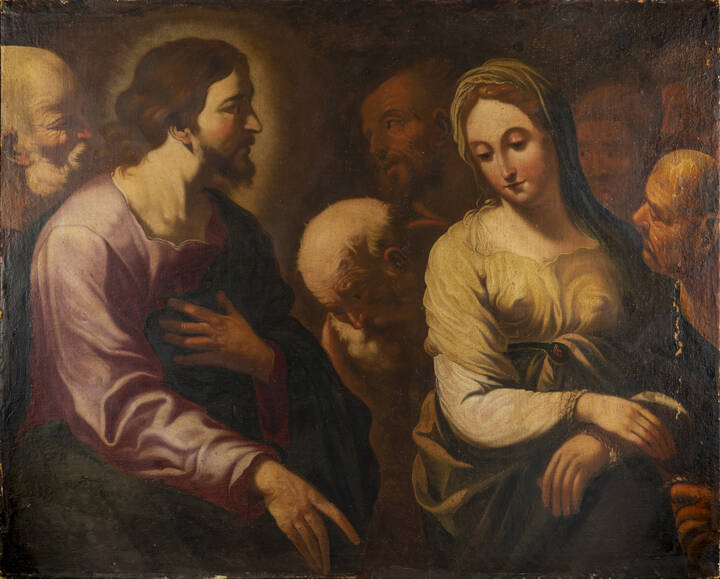 PITTORE ANONIMO<BR>"Cristo e l'adultera" XVII secolo
