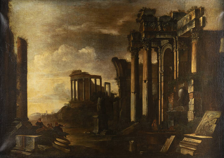 Lot 23 | PITTORE ANONIMO<BR>Fine XVIII secolo<BR>"Antiche rovine con figure" XVII secolo