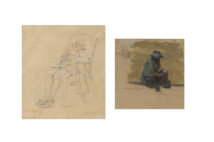 GIOVANNI BATTISTA QUADRONE<BR>Mondovì (CN) 1844 - 1898 Torino<BR>a-"Uomo seduto"<BR>b-"Ritratto di gentiluomo seduto"