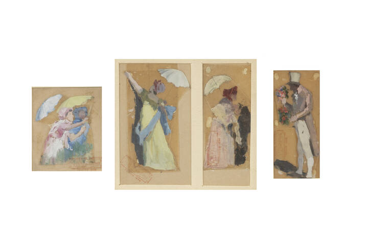 7x5,5, 10x4, 10x6, 9x4 lotto di quattro acquerelli (bozzetti) su carta