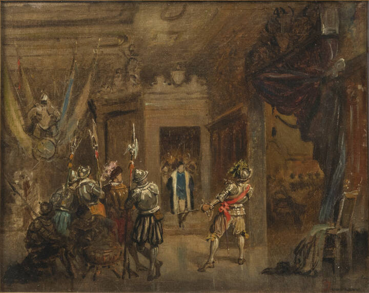 GIOVANNI BATTISTA QUADRONE<BR>Mondovì (CN) 1844 - 1898 Torino<BR>"Scena di costume con armigeri"