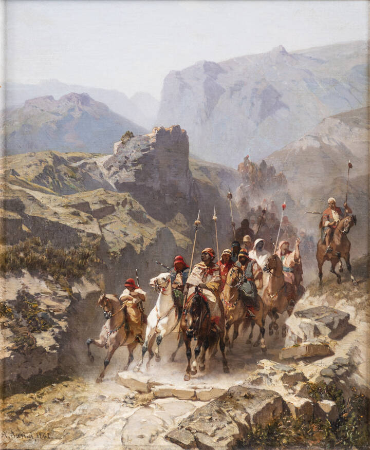 ALBERTO PASINI<BR>Busseto (PR) 1826 - 1899 Torino<BR>"Cavalieri al galoppo" 1862