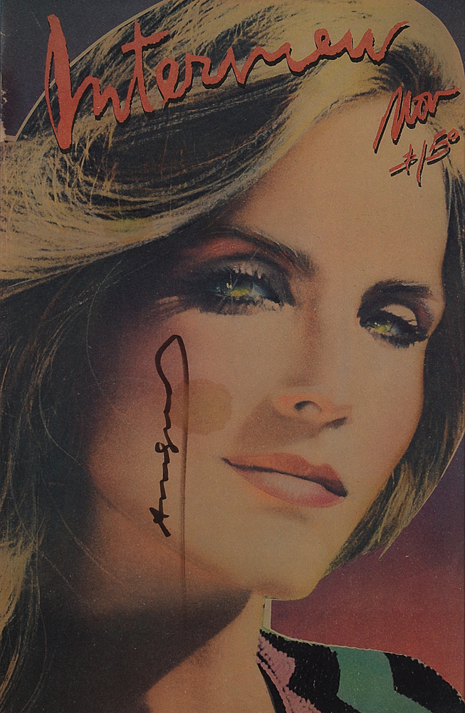 ANDY WARHOL Pittsburg (Usa) 1928 - New York 1987  Interview n° 5, 1971 copertina originale della rivista "Interview" cm. 42x27,5; firmata al centro dall'artista, provenienza Marlboro Gallery (New York), certificato di autenticità della Hirschl & Adler Modern Art Gallery (New York) allegato, pubblicato su "Andy Warhol", Gianni Versace Fine Gallery (Miami), 1979.