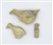Tre statuette raffiguranti volatili stanti, due naturalisticamente, la terza costituita solo dalla testa su una base a parallelepipedo; nella parte inferiore sigillo a figura umana seduta. (3)