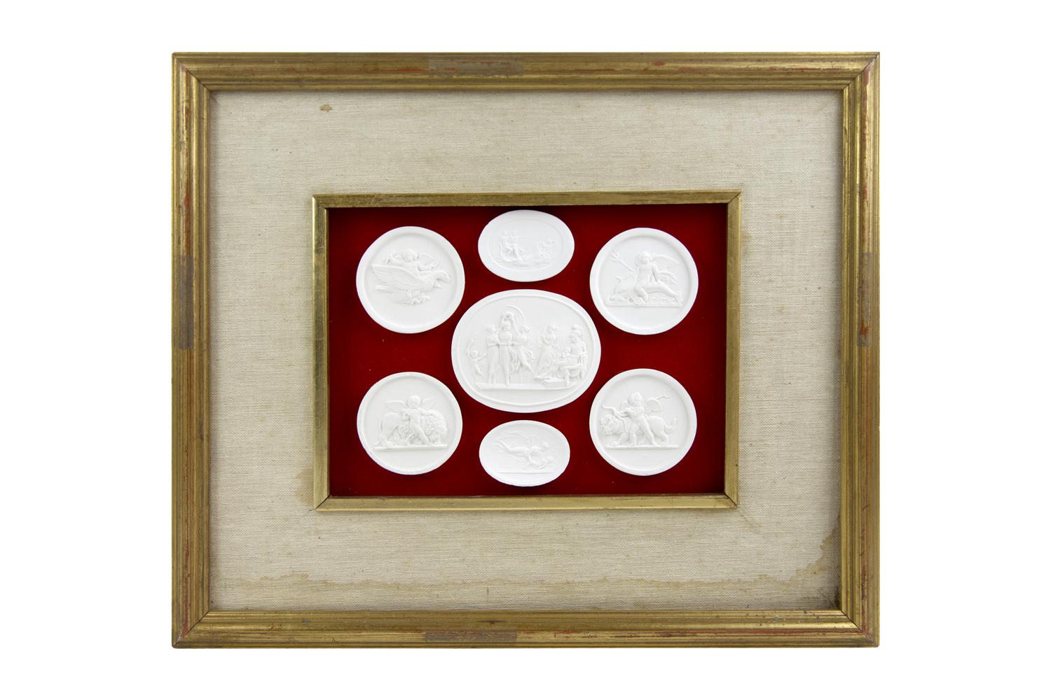 CORNICE RETTANGOLARE CONTENENTE SETTE RIPRODUZIONI SIA DI CAMMEI CLASSICI E NEOCLASSICI SIA DI OPERE DI CANOVA