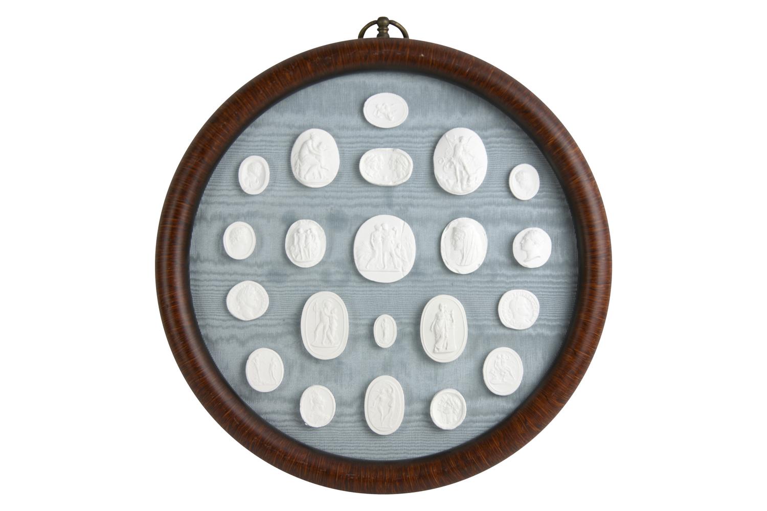 CORNICE CIRCOLARE CONTENENTE VENTUNO RIPRODUZIONI SIA DI CAMMEI CLASSICI E NEOCLASSICI SIA DI FAMOSI GRUPPI SCULTOREI COME IL LAOCOONTE