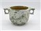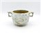 Coppa biansata ispirata ai modelli metallici di epoca romana imperiale decorata sulla vasca con tralci di grappoli d'uva e pampini.